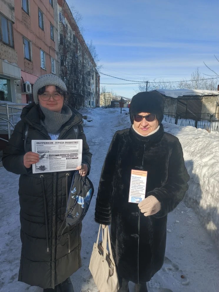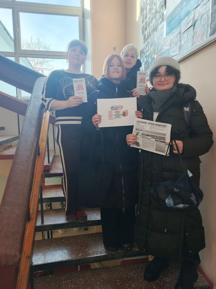 16 марта 2026 года обучающиеся объединения «Юный турист» под руководством педагога дополнительного образования Надежды Фёдоровны Ивановой организовали профилактическую акцию против экстремизма и терроризма «Экстремизму и терроризму — НЕТ!», с выходом на улицы и организации п. Сеймчан.